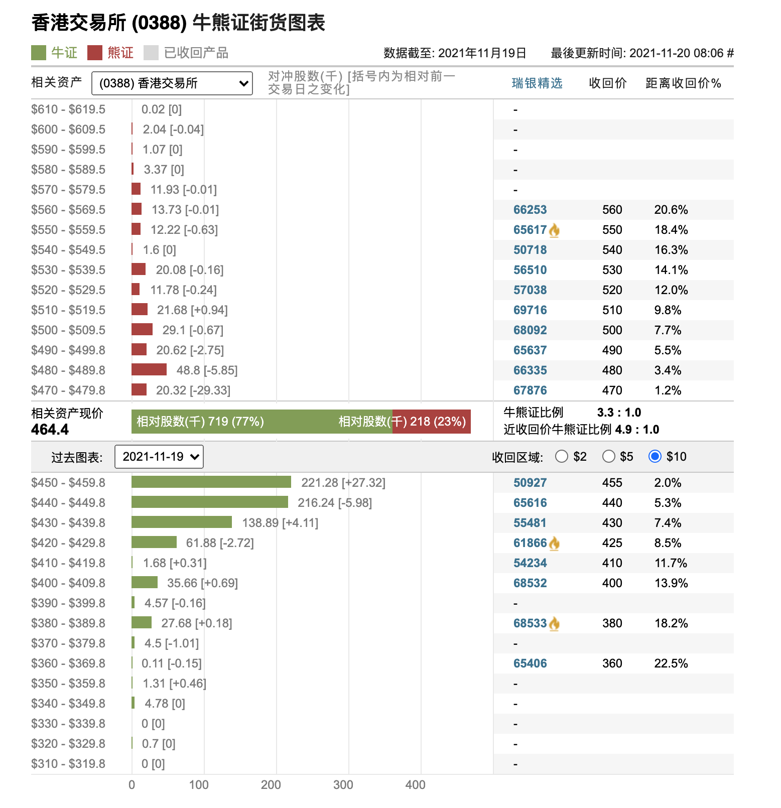 牛熊证重仓区,是根据发行人每日上载至交易所的报告,统计整个市场同一资产牛熊证的所有市场持仓,归纳出最多资金持有的收回价区域。