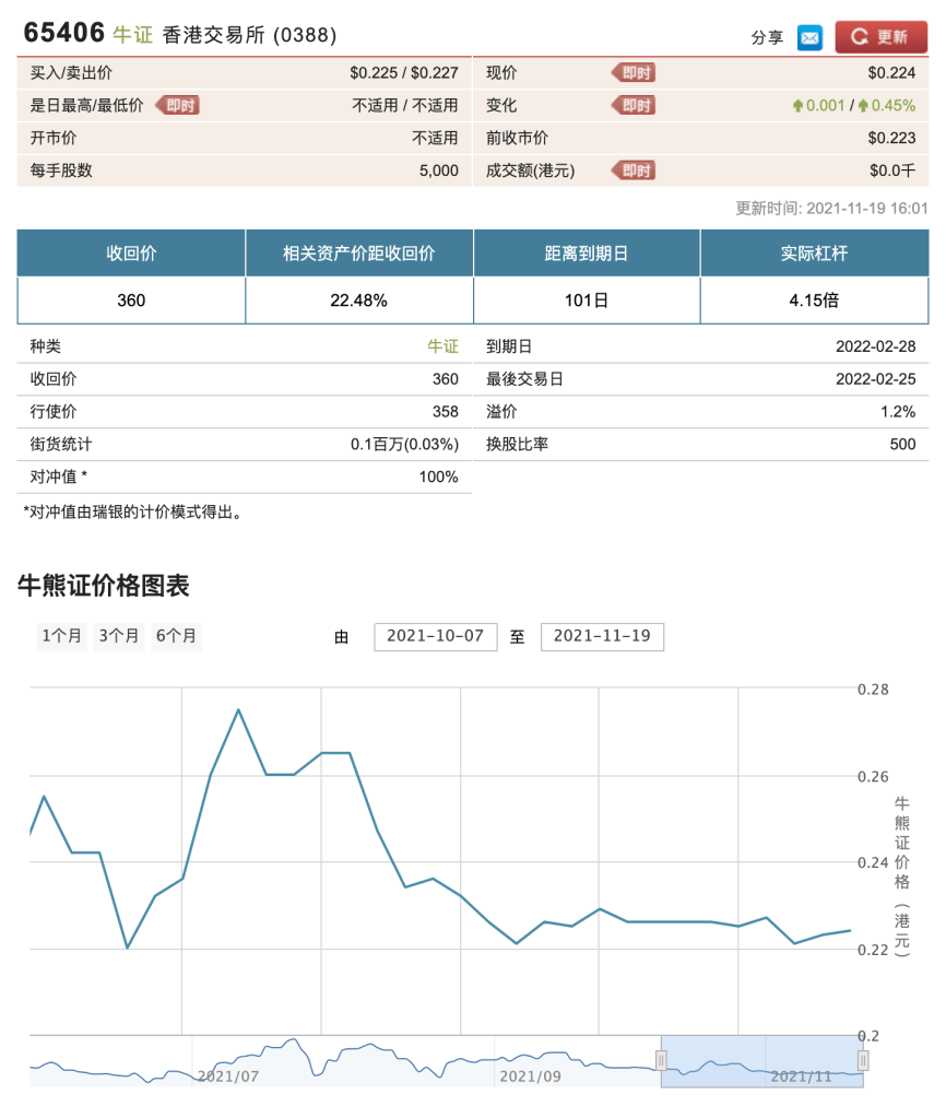 | 流通量 | 注意该牛熊证的流通量,尽量购买交易活跃的牛熊证。 |
