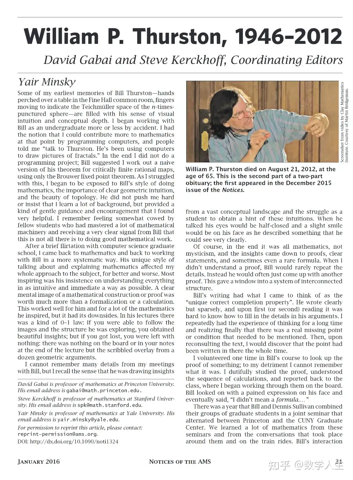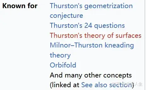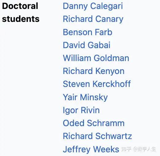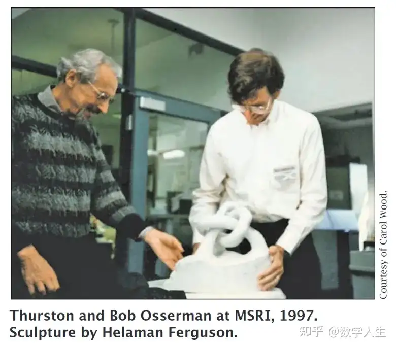 在克莱因群的研究中,Ahlfors摒弃了传统的三维拓扑方法,转而采用复解析工具。他于1964年提出的“有限性定理”指出,有限生成的克莱因群在普通集(ordinary set)上的商空间是一个有限型的轨道曲面(orbifold),这一结果揭示了克莱因群作用的几何结构,为后来的瑟斯顿(Thurston)三维流形理论提供了关键启示。他通过推广伯斯(Bers)的艾希勒上同调(Eichler Cohomology)方法,构造了光滑势函数以处理非光滑边界问题,并引入“软化子”(mollifier)技术克服了极限集(limit set)分析的困难。尽管他提出的“极限集测度零猜想”(Ahlfors Measure Zero Conjecture)未被完全证明,但推动了沙利文(Sullivan)等人在遍历理论和双曲动力系统上的突破性工作。阿尔福斯与伯斯的合作还催生了“面积不等式”(Bers-Ahlfors Area Theorems),量化了克莱因群的几何有限性,并启发了后续对拟共形映射边界对应问题的研究。