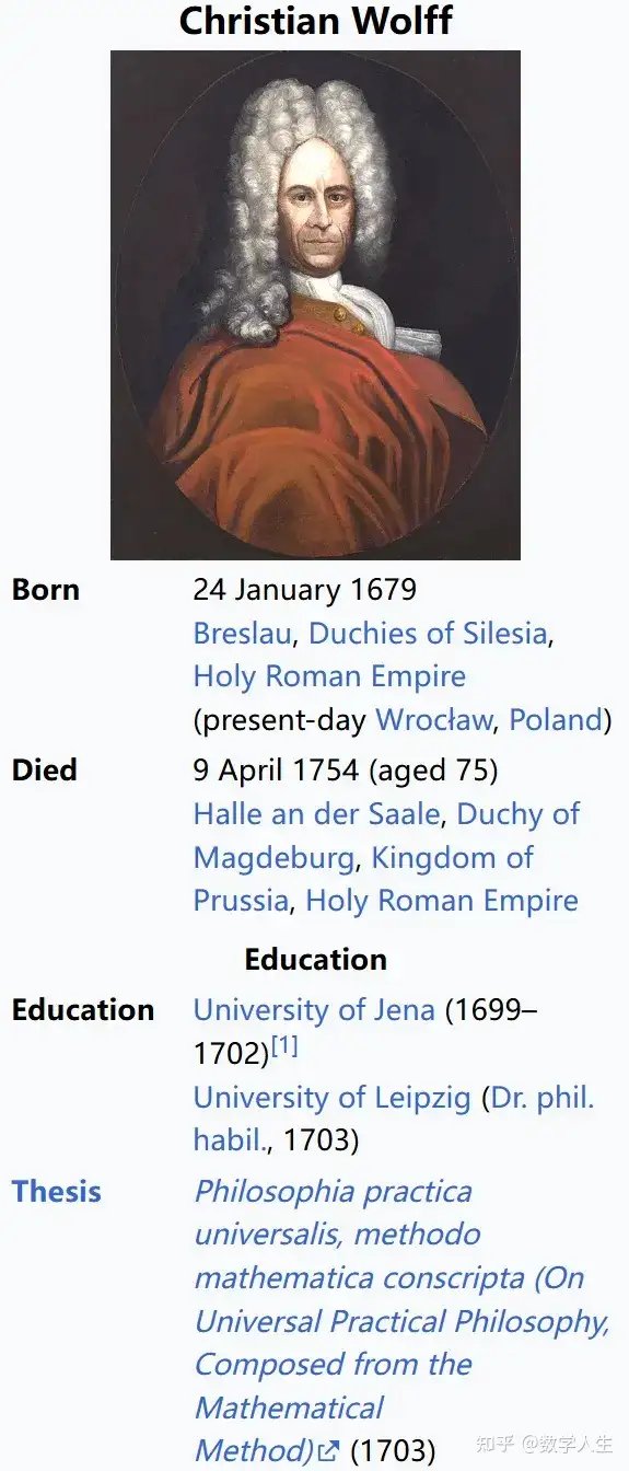 莱布尼茨的学生克里斯蒂安·冯·沃尔夫(Christian von Wolff)在推广莱布尼茨的数学和哲学思想方面发挥了重要作用,他通过系统化的教材和著作,使这些理论在德语世界得到广泛传播,促进了数学教育的发展。