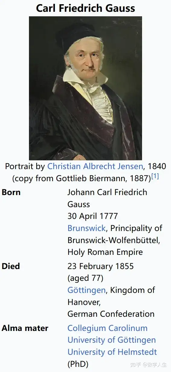 1. 高斯 (Gauss) – 德国数学家,贡献包括数论、概率论、复变函数等。
