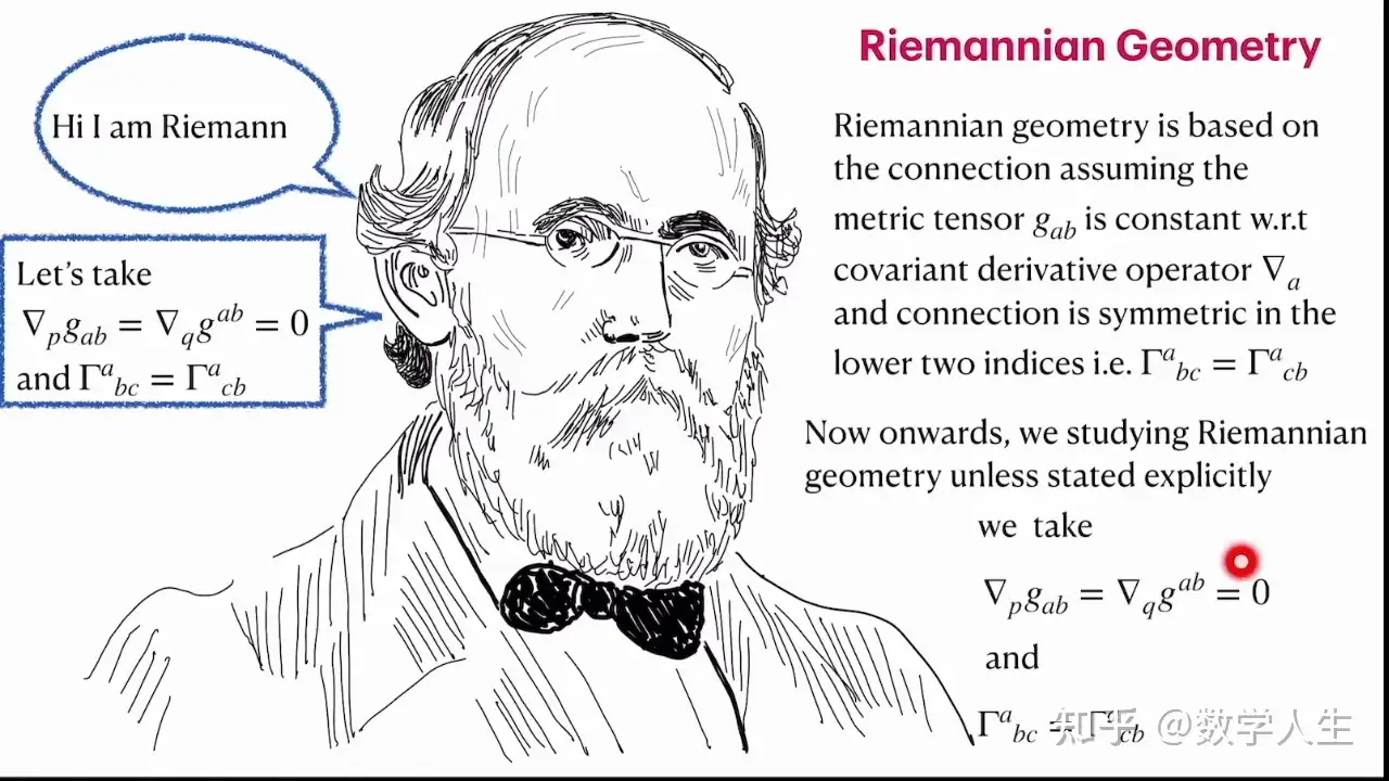 黎曼最著名的贡献之一是黎曼几何,他在1854年的就职演讲《论几何学基础中的假设》中提出了弯曲空间中的几何概念,推广了欧几里得几何学。他引入的黎曼度量和曲率张量为后来爱因斯坦的广义相对论提供了数学框架,彻底改变了人们对空间、时间和引力的理解。黎曼几何不仅成为微分几何的核心,也在现代理论物理中具有不可替代的地位。