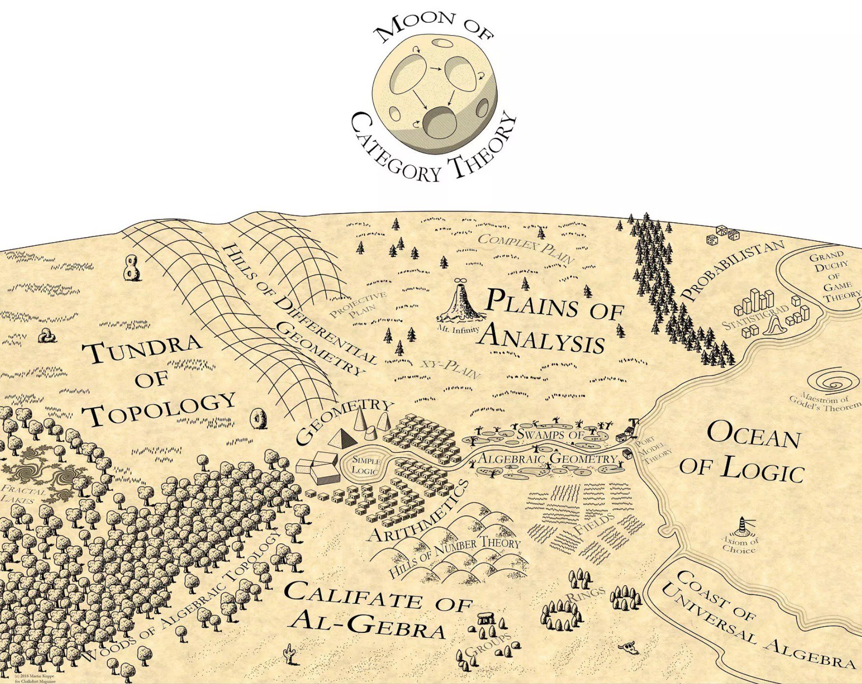 在“矢量空间平原”上,众多数学家们像欧几里得、阿基米德、笛卡尔等,都在这片广袤的平原上留下了他们的足迹。在这片广阔的领域内,“线性代数”的大师总是带着他的“矩阵”与“特征值”,在不断地将不同维度的空间互相转换,创造着极限与无限之间的美丽画卷。除此之外,还有一片广袤的“希尔伯特平原”,平原上生长着众多的数学森林和神秘的定理山脉。其中有一条通往“范畴之城”的道路,这条路是由“范畴论”铺设的,它用一条“同构”桥连接着不同的数学领域。这个城市的建设者是“埃尔朗”(Eilenberg)和“马尔基厄尔”(Mac Lane),他们共同创造了“范畴论”的基础,强调了数学结构间的关系与变换。每当人们走进范畴之城,都会看到“函子桥”和“自然变换塔”巍然矗立,仿佛在讲述一个个不同领域之间的“同伦”与“同调”的深刻联系。