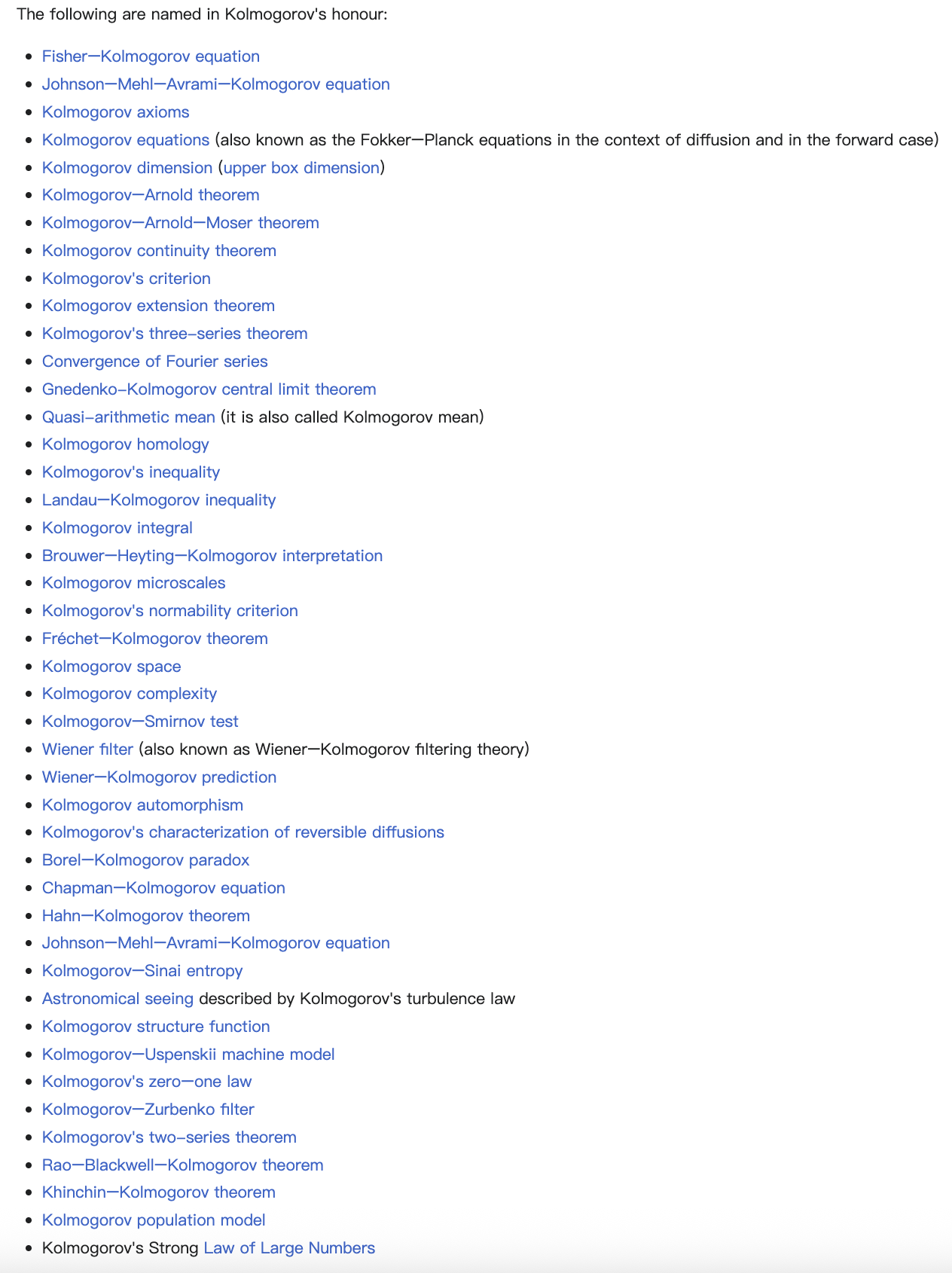 柯尔莫哥洛夫被广泛视为20世纪最具原创性和影响力的数学家之一,其工作不仅重塑了多个数学领域,还通过教育和跨学科研究留下了持久遗产。笔者貌似找到一个 Andrei Kolmogorov 不研究的领域,那就是数论(Number Theory)。