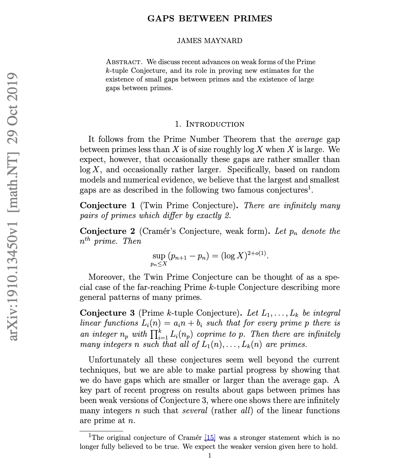 素数间距问题一直是数论研究的核心课题之一,特别是关于素数间最大间距的研究吸引了众多数学家的关注。本文整合了Ford、Green、Konyagin、Maynard和Tao等人在”Large Gaps between primes”和”Long gaps between primes”两篇重要论文中的工作,系统介绍素数大间距问题的发展历史和整体研究思路。