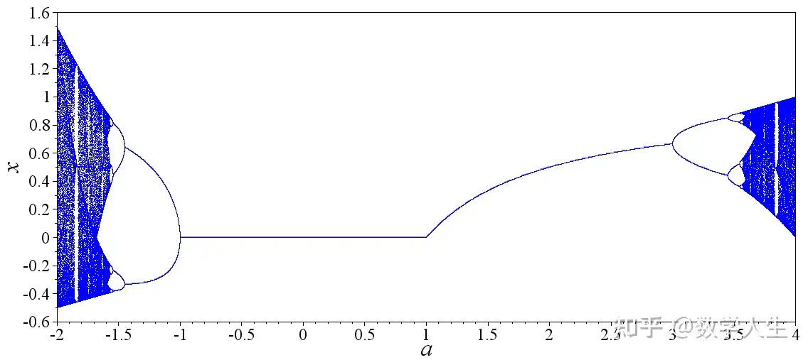 f(x)依赖于某个参数a(比如f_a(x) = a * x * (1 - x))时,随着a的变化,系统的长期行为(吸引子的类型、数量、稳定性)会发生突然的、戏剧性的变化。这就像调节一个旋钮,系统性质突然“跃变”了。