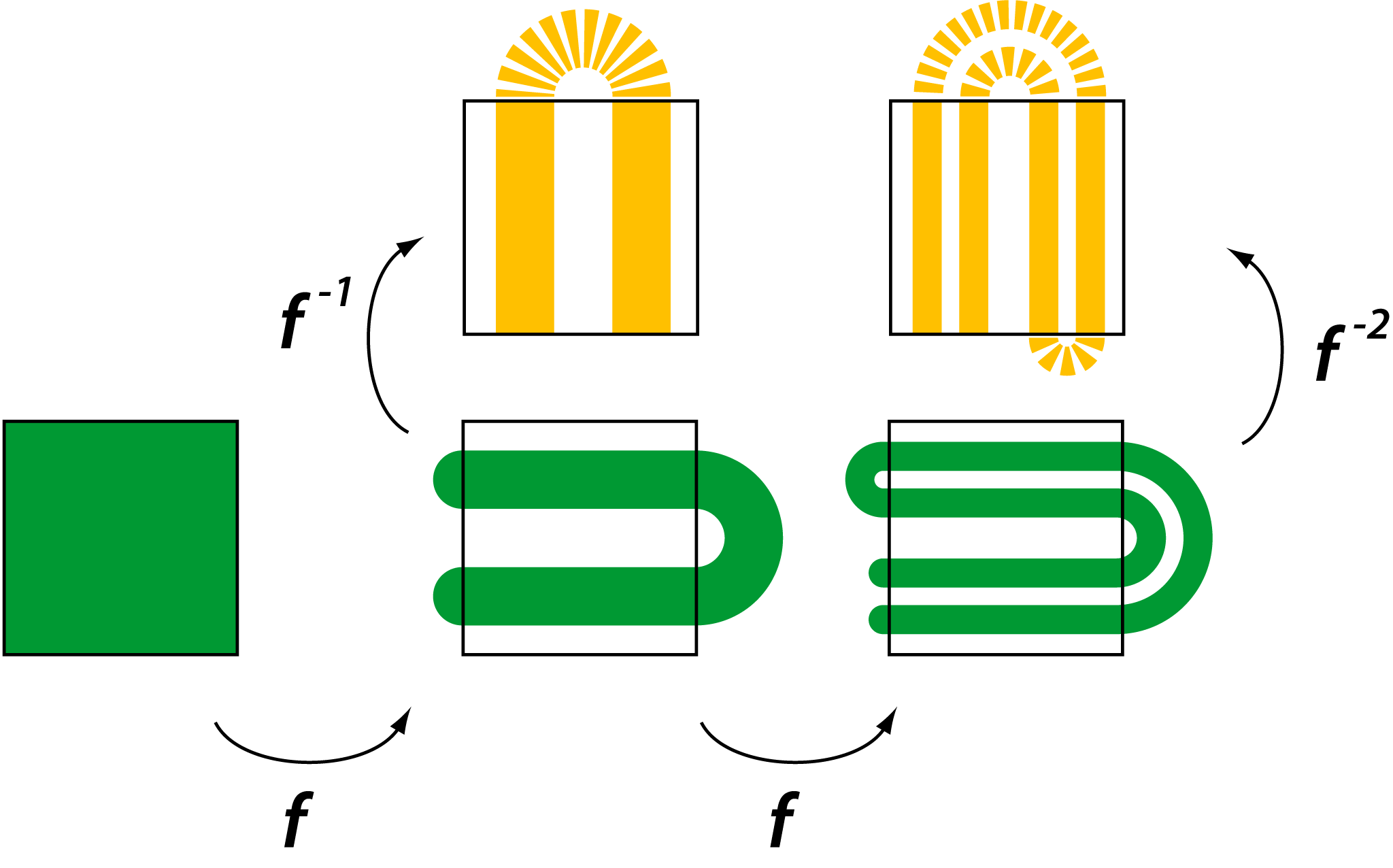 x₀和y₀,经过多次迭代后,它们的轨道{x_n}和{y_n}会分道扬镳,变得毫无关系吗?如果系统具有这种性质,那么长期预测就变得极其困难。 - 拓扑共轭: 两个看起来不同的规则